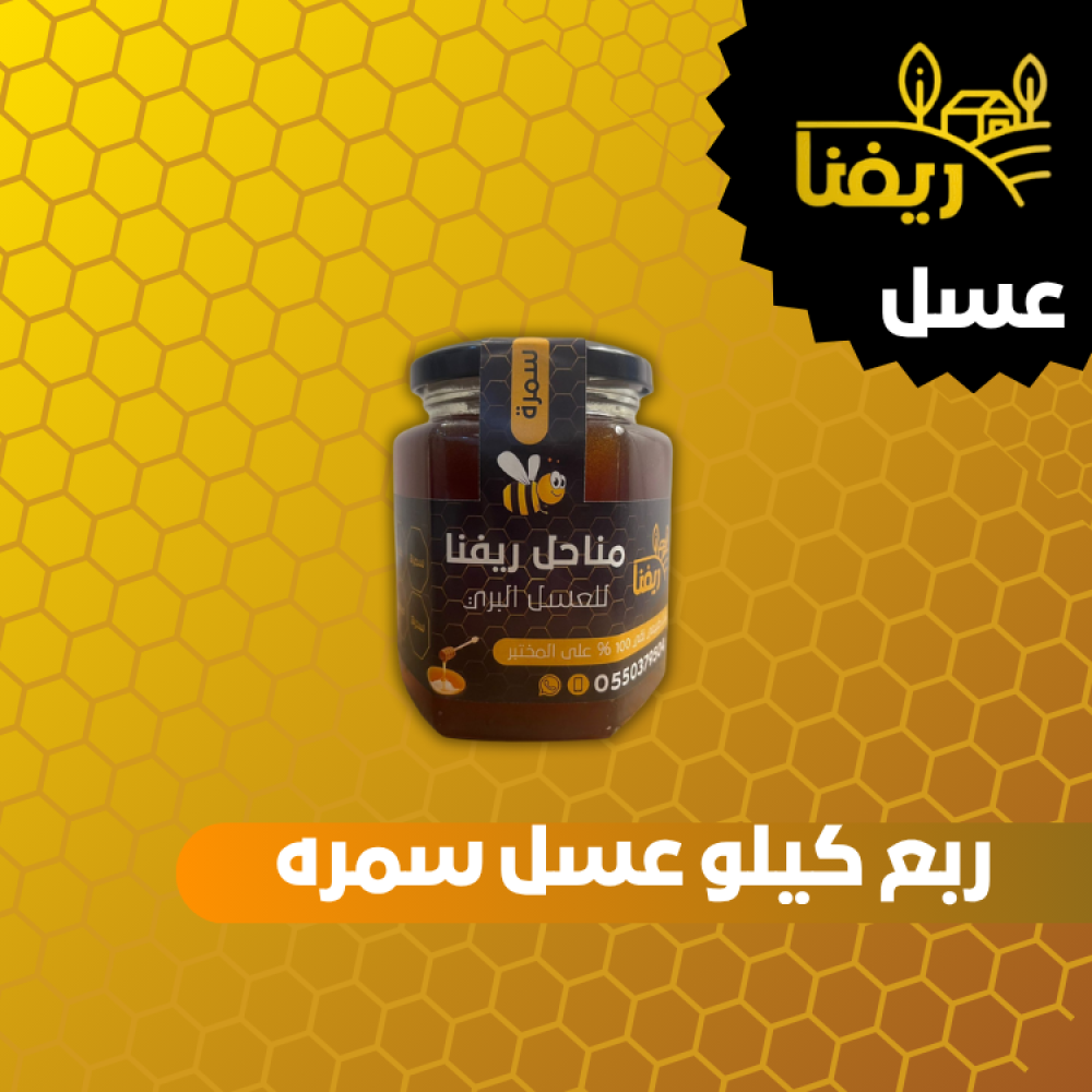 عسل سمرة نقي 100%، يتميز بلونه الداكن ونكهته الغنية، غني بالمعادن ومضادات الأكسدة، ويعد خيارًا مثاليًا لدعم الصحة وتعزيز المناعة.